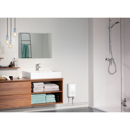 Dzięki dotykowym przyciskom i wyświetlaczowi LED temperaturę można wygodnie ustawić w zakresie 20–60 °C. Stabilną temperaturę wody zapewnia system TWIN TEMPERATURE Control (TTC®), a nieosłonięta grzałka IES® (element grzejny bezpośrednio w wodzie) gwarantuje wysoką sprawność i szybkie nagrzewanie.