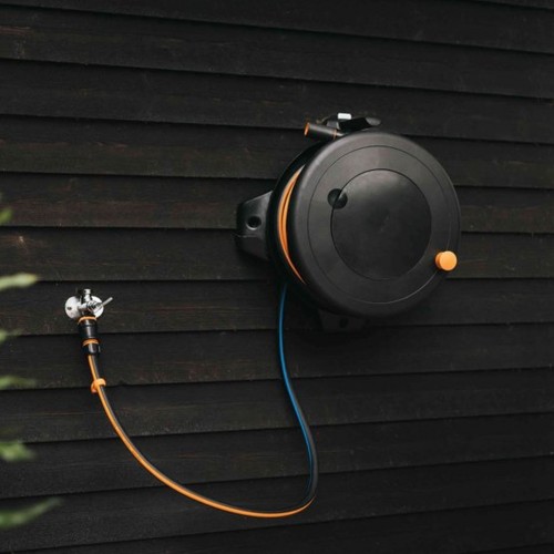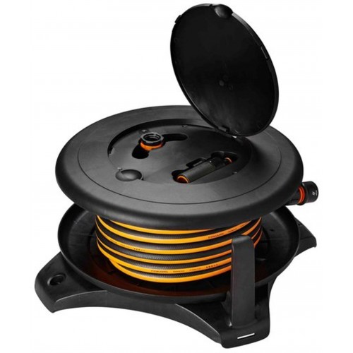 • Kompaktowy, łatwy w użyciu zestaw do podlewania: zawiera wąż, bęben, dyszę zraszającą i przyłącza