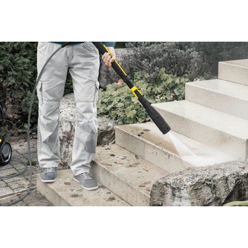 Urządzenie można połączyć z aplikacją Kärcher Home & Garden przez Bluetooth, która podpowiada optymalne ustawienia ciśnienia oraz oferuje praktyczne wskazówki dotyczące czyszczenia różnych powierzchni. Model idealnie sprawdzi się do czyszczenia tarasów, podjazdów, elewacji, ogrodzeń, mebli ogrodowych, motocykli i większych samochodów.