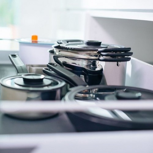 - Dzięki możliwości ułożenia jednego garnka na drugim możemy zaoszczędzić miejsce w kuchennej szafce