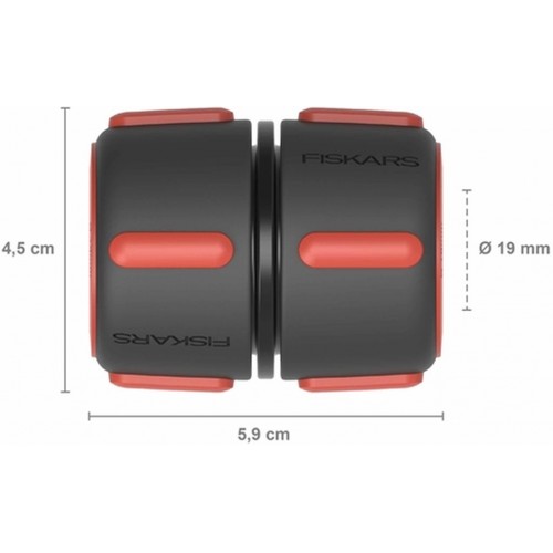 Złączka do dwóch węży Fiskars Comfort umożliwia szybką naprawę uszkodzonych węży ogrodowych lub ich łatwe przedłużenie. Wystarczy wyciąć uszkodzony fragment węża i połączyć oba końce za pomocą złączki.